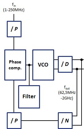 62.5MHz – 2GHz programmable output frequency (D = 1-16)